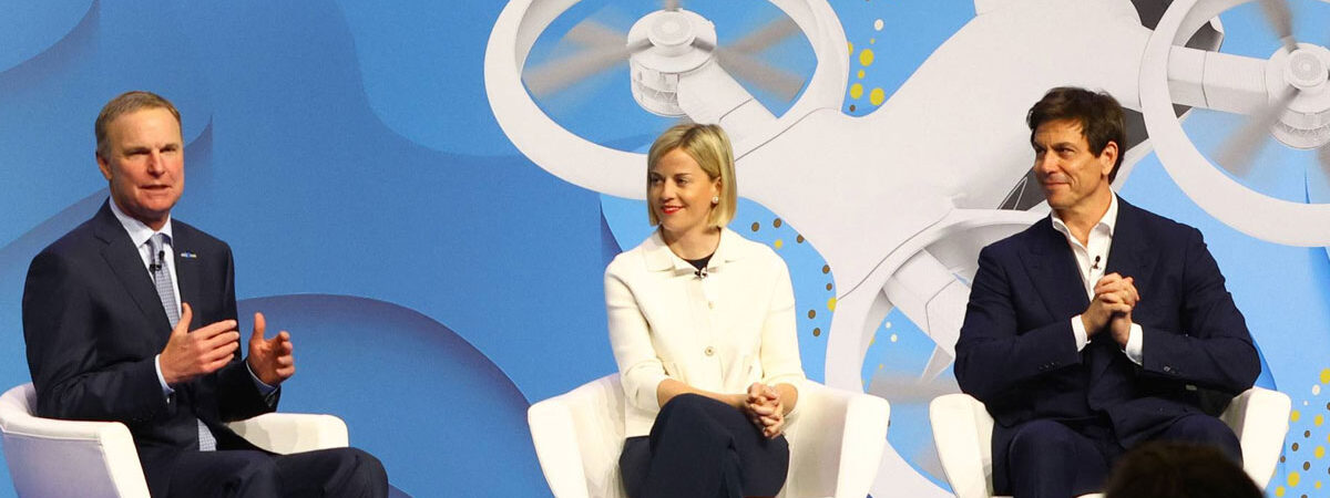 Toto and Susie Wolff were welcomed on stage by NBAA President and CEO Ed Bolen. They spoke about the connections between aviation and car racing as well as the difficulties both fields confront in attracting fresh talent and achieving sustainability.